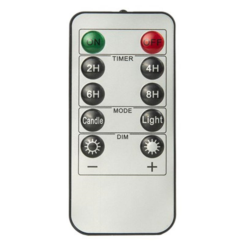 - Afstandsbediening met 10 knoppen voor aan/uit, flikkeren, constant licht en dimmen