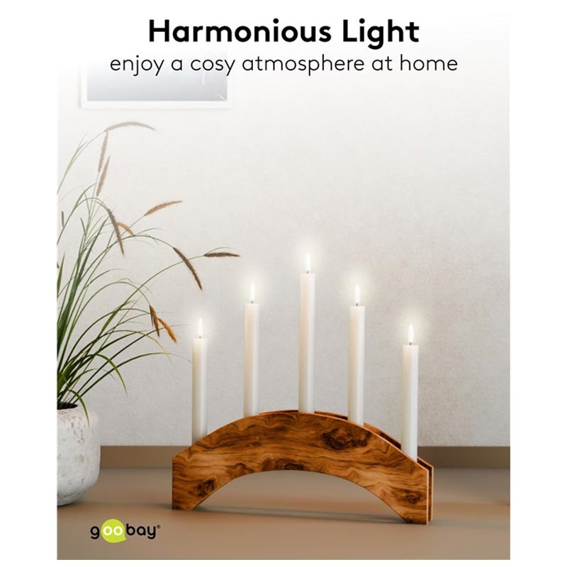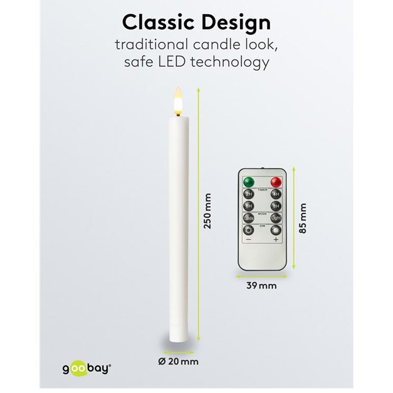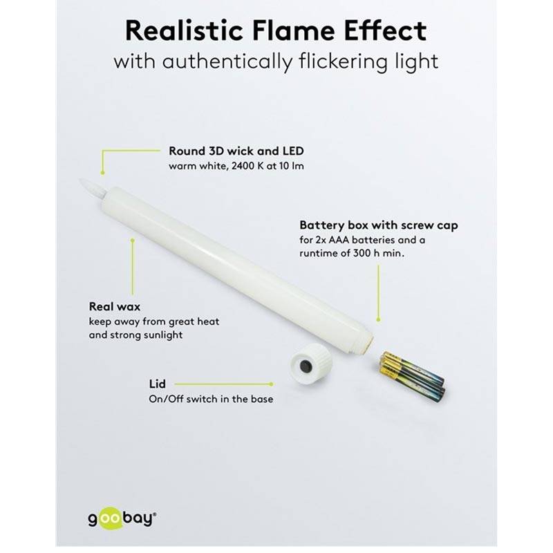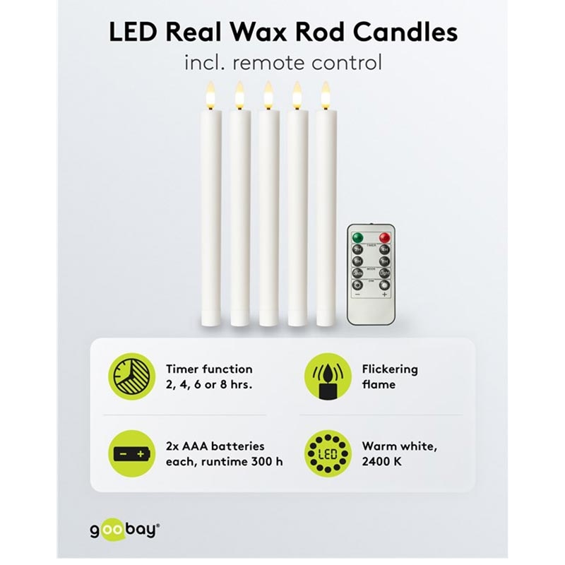 • Goobay Set van 5 LED Echte Wax Taper Kaarsen - 3D Vlam, Afstandsbediening, Timer, Dimbaar, Warm Wit 2400 K