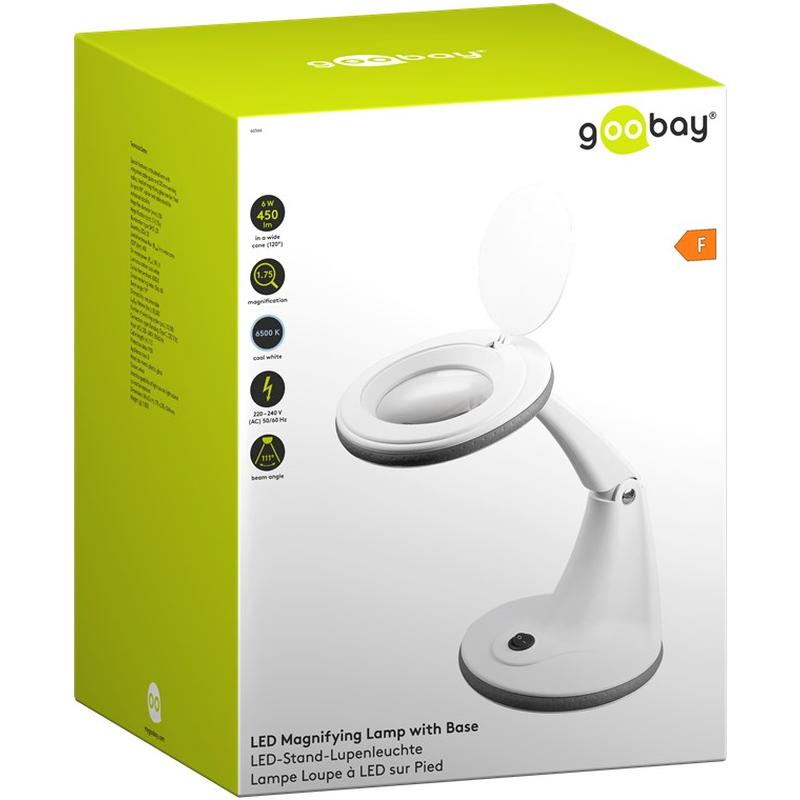 • Goobay LED Loeplamp met Voet - 6W Ringlicht, 100 mm glazen lens, 1,75x (3 dioptrieën), 450 lm, 6500K Cool White, verstelbare arm (Zwart)
