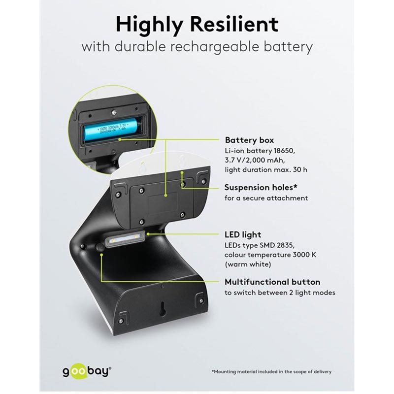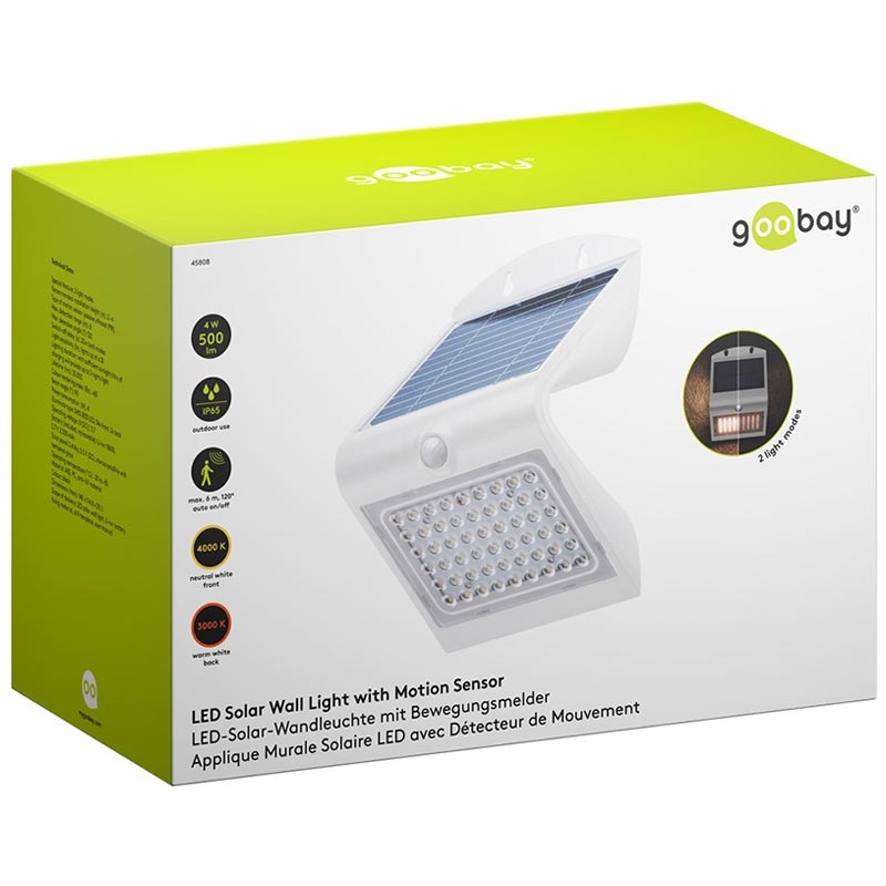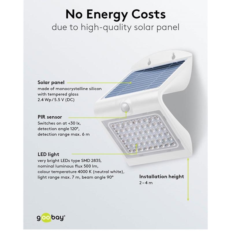 Goobay LED Solar Wandlamp 4W met PIR Bewegingssensor - IP65 Waterdichte Buitenlamp op Zonne-energie (500 lm, 4000K) - Vervangbare Batterij