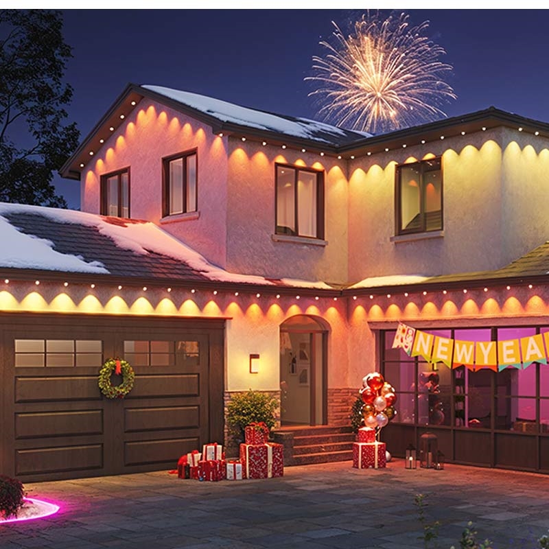 Transformeer de buitenkant van je huis met de Govee Permanent Outdoor Lights 2, een eersteklas slim verlichtingssysteem dat is ontworpen om het hele jaar door decoratie en sfeer te creëren. Met 16 miljoen kleuren, 100 dynamische scènemodi en heldere witte LED's van 40 lm creëert deze set levendige verlichting voor elke gelegenheid - Valentijnsdag, Kerstmis, Halloween, feestjes of alledaagse avonden op het terras. De verbeterde RGBICW-technologie zorgt voor vloeiende, uniforme kleurovergangen zonder flikkering of paarse tint, terwijl de duurzame IP67-lichtbehuizing en anti-UV-materialen bestand zijn tegen barre weersomstandigheden, van zomerse hitte tot winterse vrieskou. In combinatie met de Govee Home App, spraakassistenten of AI-gegenereerde lichtshows biedt het systeem volledige aanpassingsmogelijkheden voor een moeiteloze schittering buitenshuis.