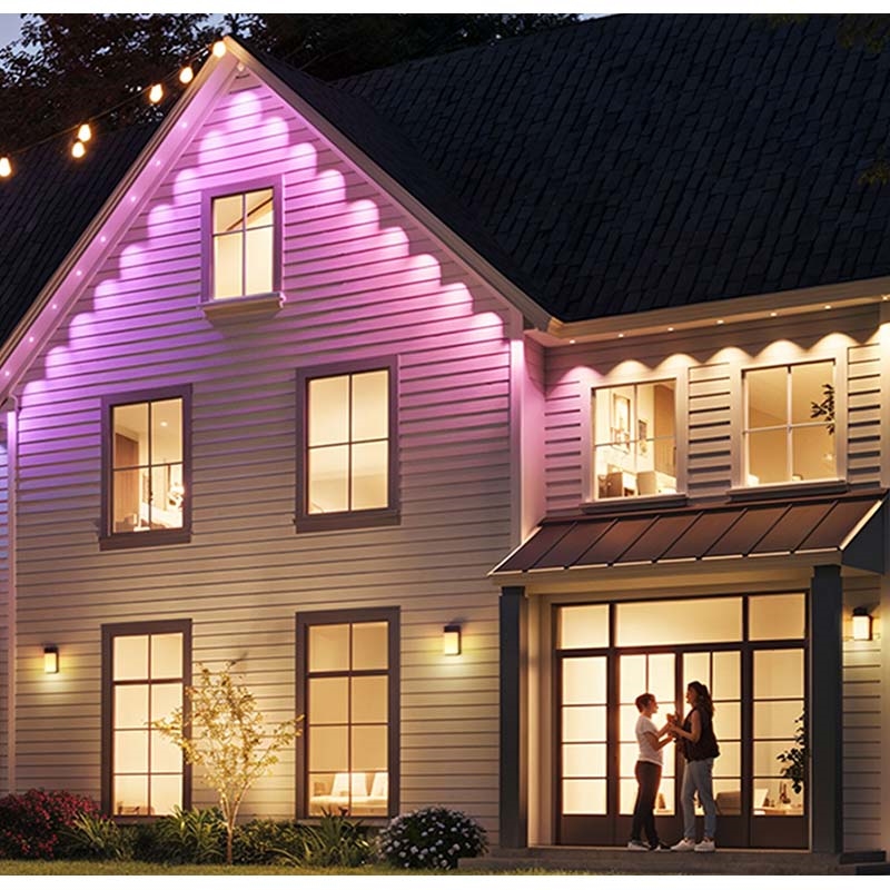 Govee permanente buitenverlichting 2 biedt een professionele verlichtingsupgrade voor elk huis aan de buitenkant. In tegenstelling tot tijdelijke lichtsnoeren biedt dit systeem een krachtige helderheid, geavanceerde weerbestendigheid en zeer aanpasbare slimme bediening. De RGBICW-technologie maakt gedetailleerde, meerkleurige lichteffecten mogelijk die traditionele LED-strips niet kunnen bereiken. Met duurzaamheid op lange termijn, AI-lichtshows en naadloze app- of stembediening is het een investering die de aantrekkingskracht van het straatbeeld vergroot en elk feest een feestelijk tintje geeft.