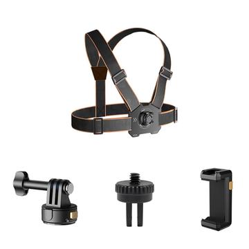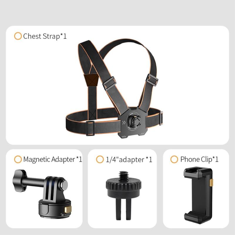 GP-032 Actioncamera-borstbandset - magnetische snelkoppelingsbasis, 1/4" mini-adapter en telefoonclip voor POV-opnames