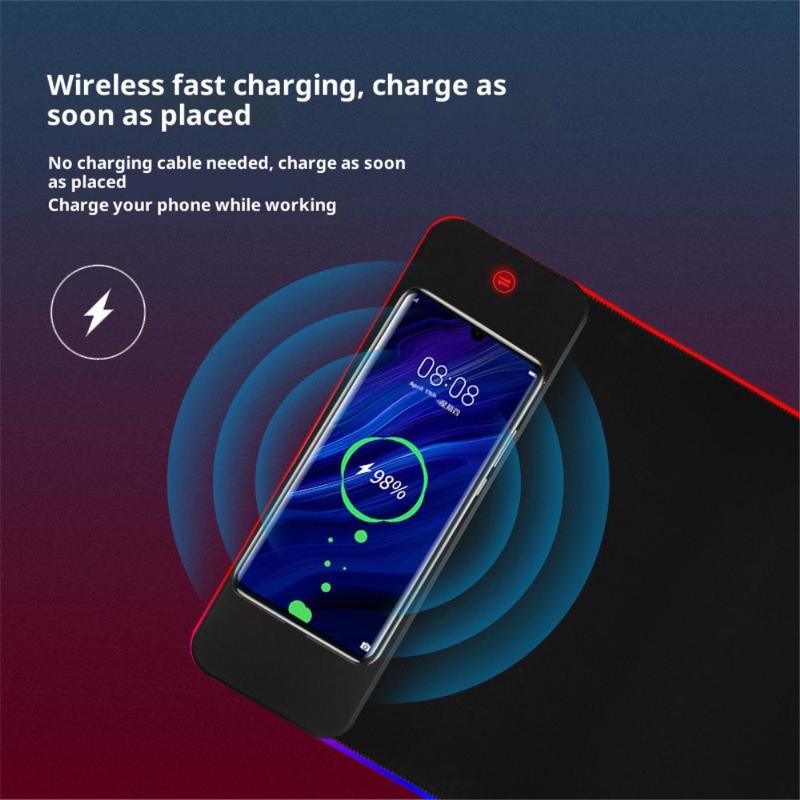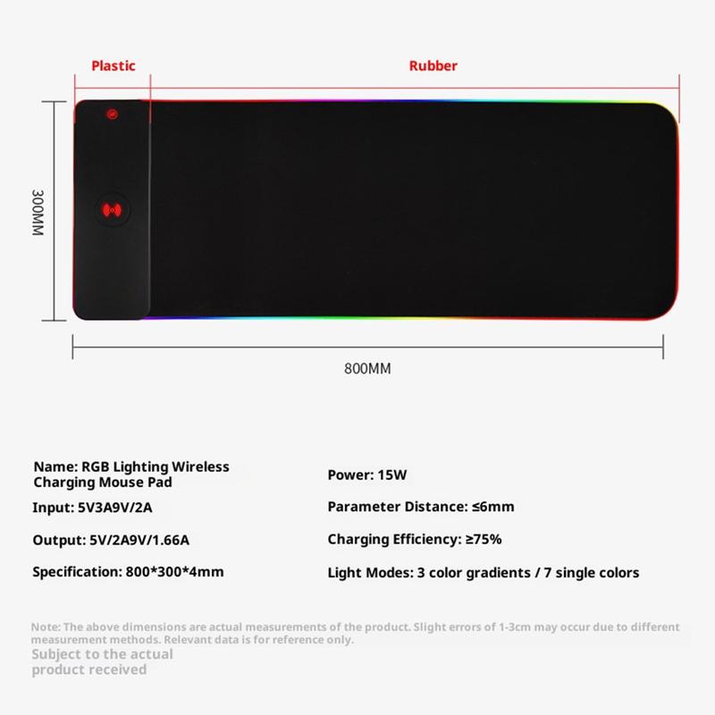 Groot antislip RGB-toetsenbord/muismat met 15W draadloze oplader, LED-verlichting - 800×300×4 mm