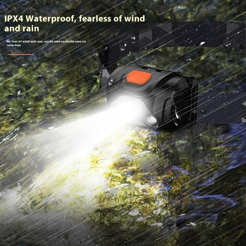 De IPX4 waterdichtheid beschermt de hoofdlamp tegen spatwater uit alle richtingen. Dit maakt hem geschikt voor gebruik in lichte regen, vochtige omstandigheden of vochtige buitenomgevingen.