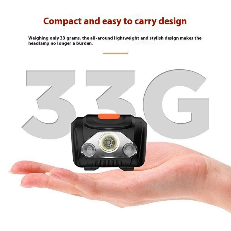Met afmetingen van 60 × 45 × 32 mm is de hoofdlamp klein, lichtgewicht en gemakkelijk mee te nemen. Hij past comfortabel op het hoofd zonder ongemak te veroorzaken, waardoor hij geschikt is voor langdurig gebruik tijdens buitenactiviteiten.