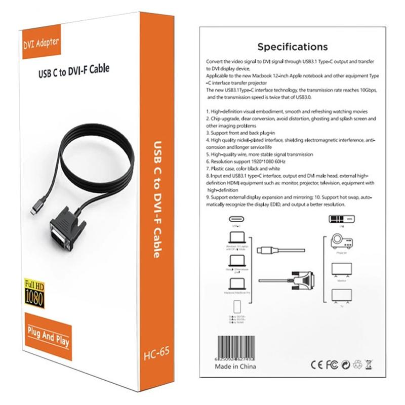 Sluit uw USB-C-apparaat aan op een DVI-monitor of -projector met de HC-65 USB-C-naar-DVI-adapterkabel. Deze kabel is ontworpen voor laptops, tablets en compatibele smartphones en stelt u in staat om uw scherm te spiegelen of uit te breiden naar grotere schermen voor presentaties, kantoorwerk en het bekijken van multimedia. Met ondersteuning voor 1080p Full HD-resolutie levert hij heldere en stabiele beelden die geschikt zijn voor dagelijkse productiviteit en entertainment.