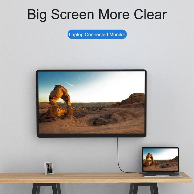 De omkeerbare USB-C-connector maakt aansluiten eenvoudig, terwijl de geïntegreerde hoogwaardige conversiechip zorgt voor een stabiele signaaloverdracht en compatibiliteit met een breed scala aan apparaten. De duurzame PVC-kabel en de verlengde lengte van 1.9m bieden flexibiliteit voor bureauopstellingen, vergaderruimtes of thuiswerkplekken.