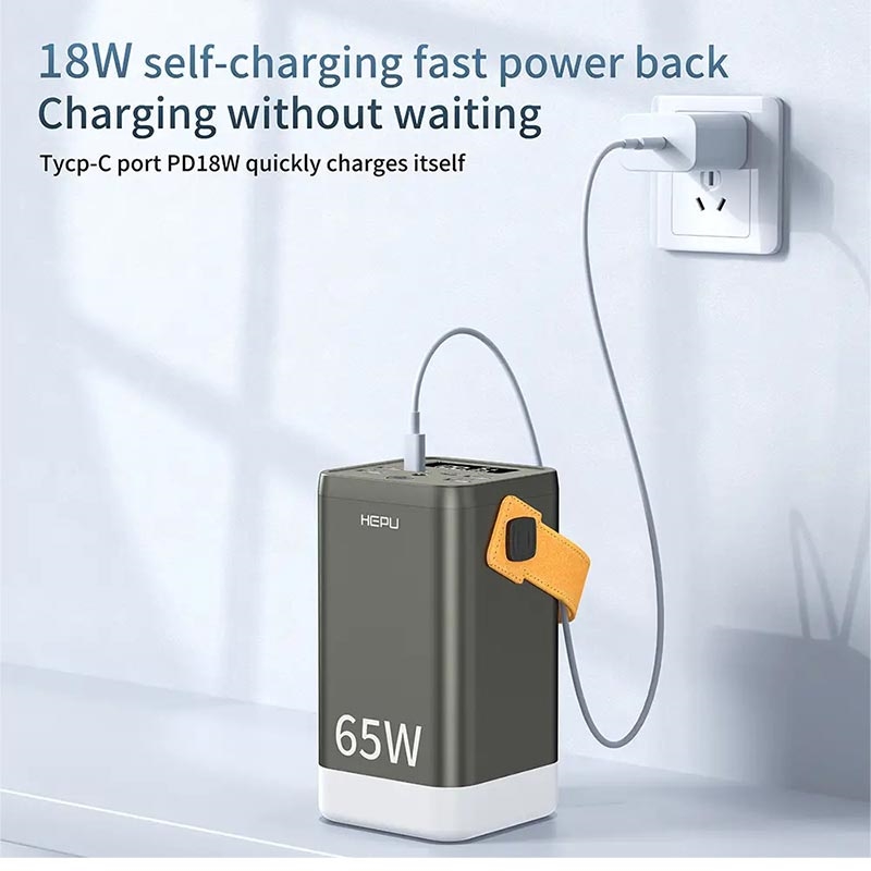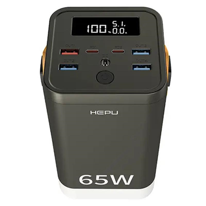 De HEPU XXL HP211 is een enorme 60000mAh powerbank, ontworpen voor gebruikers die meerdere oplaadpoorten en een langdurige capaciteit nodig hebben. Met vier USB-A poorten, twee USB-C PD poorten en een DC poort kan hij meerdere apparaten tegelijk van stroom voorzien, waaronder smartphones, tablets en kleinere laptops. Hoewel hij op papier ondersteuning voor 65 W snelladen belooft, zijn de prestaties het meest geschikt voor gebruikers die capaciteit belangrijker vinden dan snelheid.