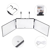 Deze drievoudige LED-spiegel biedt de zichtbaarheid en verlichting die nodig is voor een precieze verzorging vanuit alle hoeken. De verstelbare haak, LED-verlichting met natuurlijk licht en brede kijkhoek maken hem functioneler dan een standaard platte spiegel. Duurzaam, draagbaar en gemakkelijk te gebruiken, het is een waardevolle aanvulling op elke schoonheids- of verzorgingsroutine.