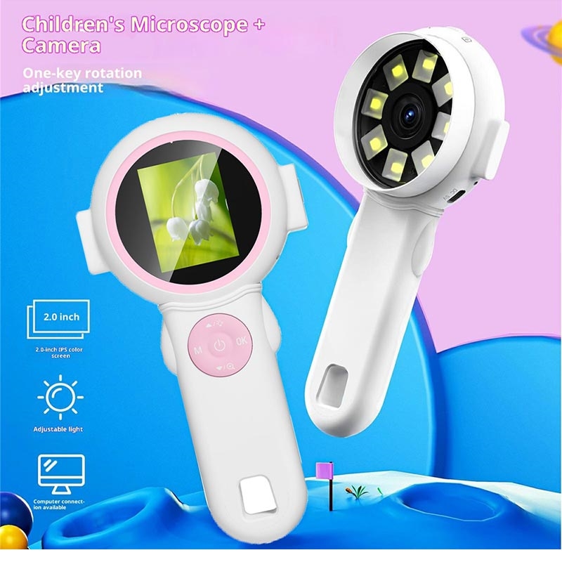 HM020J Digitaal vergrootglas voor kinderen / Handheld Mini Microscoop & Camera met LED-verlichting, 2" IPS-scherm