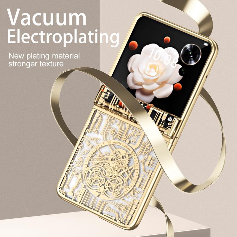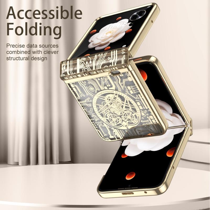 De Mechanical Legend Series Case voor Honor Magic V Flip combineert superieure bescherming met een strak design. Deze gegalvaniseerde PC telefoonhoes, compleet met schermfolie, biedt een uitgebreide bescherming tegen krassen, vallen en dagelijkse slijtage. De stijlvolle afwerking voegt een vleugje elegantie toe aan je toestel, waardoor het zowel functioneel als modieus is.