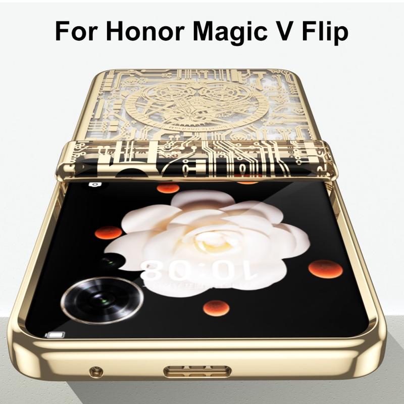 De Mechanical Legend Series Case voor Honor Magic V Flip combineert superieure bescherming met een strak design. Deze gegalvaniseerde PC telefoonhoes, compleet met schermfolie, biedt een uitgebreide bescherming tegen krassen, vallen en dagelijkse slijtage. De stijlvolle afwerking voegt een vleugje elegantie toe aan je toestel, waardoor het zowel functioneel als modieus is.
