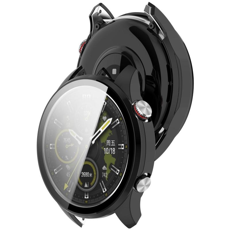 2-in-1 ontwerp, de ideale oplossing om je kostbare Honor Watch 5 Pro te beschermen tegen dagelijkse beschadigingen. Een gehard glazen schermbeschermer houdt het horloge krasvrij, maar het heeft geen invloed op de aanraakgevoeligheid en helderheid van het scherm. Omlijst met plastic, geeft het je Honor Watch 5 Pro meer schoonheid.