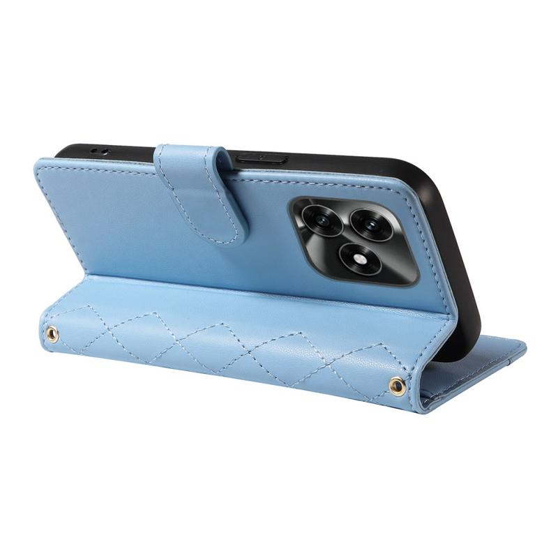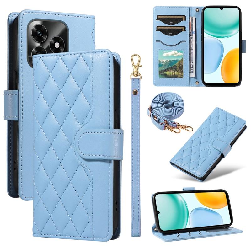Luxe Gewatteerd Portemonnee Hoesje met Schouder & Polsband voor Honor X5c Plus - Beschermende Hoes met Ruitpatroon