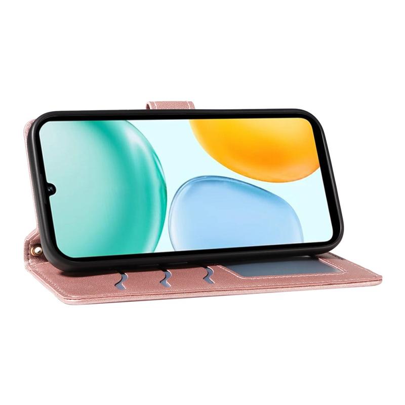 Luxe Gewatteerd Portemonnee Hoesje met Schouder & Polsband voor Honor X5c Plus - Beschermende Hoes met Ruitpatroon