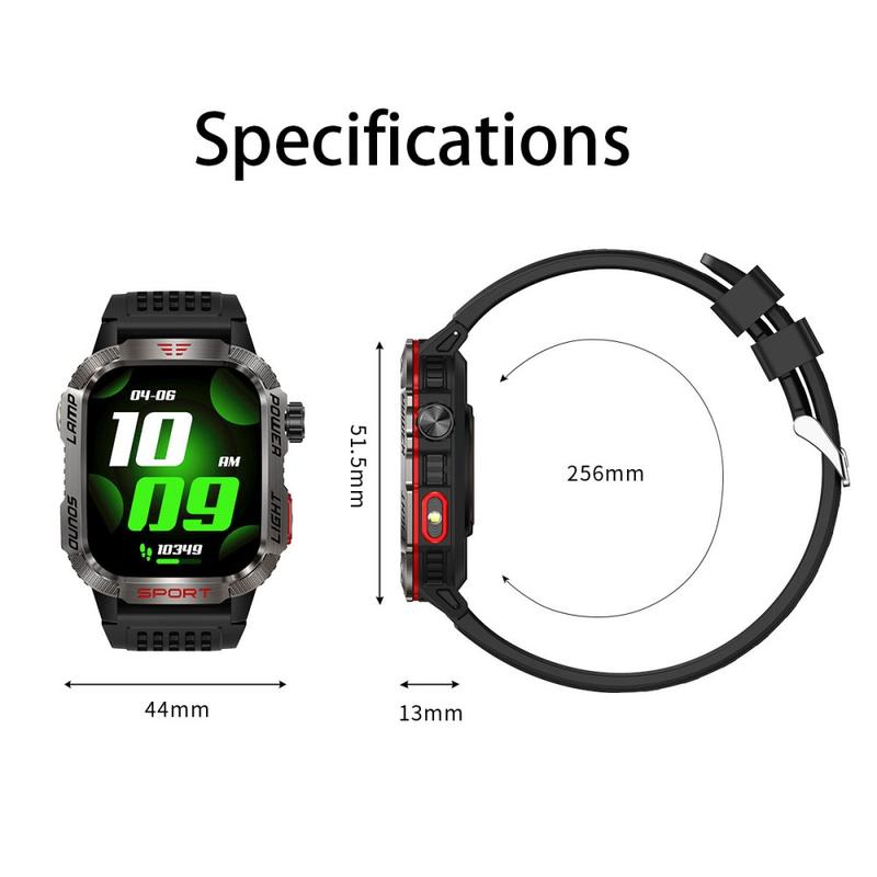 HT29 Smartwatch met 2,01" HD-scherm, kompas, hoogtedetectie, zaklamp en gezondheidsmonitoring