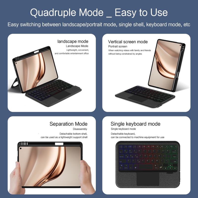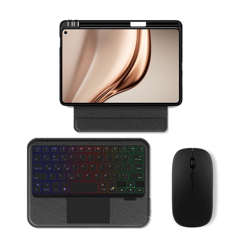 Verbeter uw Huawei MatePad Mini met de Bluetooth toetsenbord case, een multifunctionele 2-in-1 accessoire die bescherming, productiviteit en stijl combineert. Gemaakt van premium polyrethaan, biedt deze slanke case volledige bescherming tegen krassen, schokken en vingerafdrukken met behoud van een professionele uitstraling. Het afneembare Bluetooth-toetsenbord maakt draadloos verbinding voor vloeiend, responsief typen, terwijl het geïntegreerde touchpad multi-gesture controle ondersteunt voor moeiteloze navigatie. Dankzij het toetsenbord met achtergrondverlichting kunt u zelfs in omgevingen met weinig licht comfortabel typen. De ingebouwde verstelbare standaard biedt een ergonomische kijkhoek, waardoor het perfect is voor typen, streamen of lezen. Deze toetsenbordhoes is ontworpen voor zakelijk, reis- of dagelijks gebruik en verandert je tablet in een draagbaar werkstation.