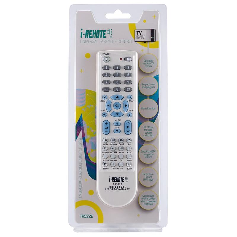 i-Remote TR522E universele tv-afstandsbediening - vervangende afstandsbediening voor televisie, IR-bediening met groot bereik