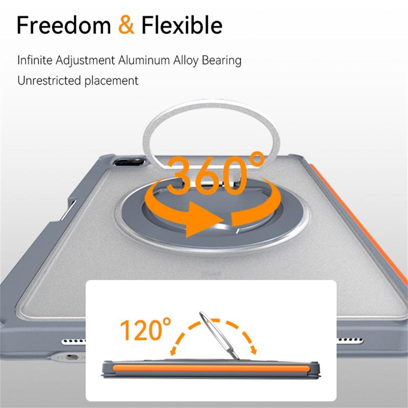 - 360° draaibare standaard - Uitgerust met een scharnier van een versterkte aluminiumlegering, biedt deze standaard een soepele 360° rotatie en meerdere stabiele kijkhoeken - ideaal voor typen, schetsen of videogesprekken.