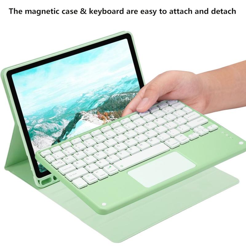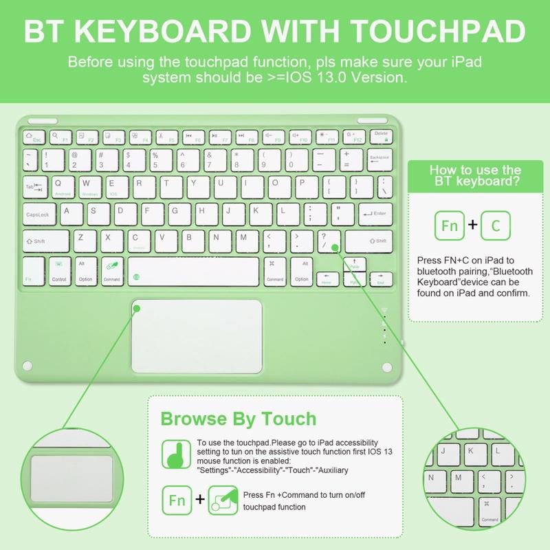 Verfraai je iPad Air 11 2026/2025/2024, iPad Air 2022/2020 met de Bluetooth toetsenbordhoes, een multifunctioneel 2-in-1 accessoire dat bescherming, productiviteit en stijl combineert. Deze slanke hoes is gemaakt van eersteklas polyurethaan en biedt volledige bescherming tegen krassen, schokken en vingerafdrukken met behoud van een professionele uitstraling. Het Bluetooth-toetsenbord maakt draadloos verbinding voor vloeiend, responsief typen, terwijl het geïntegreerde touchpad multi-gesture controle ondersteunt voor moeiteloze navigatie. Dankzij het toetsenbord met achtergrondverlichting kunt u zelfs in omgevingen met weinig licht comfortabel typen. De ingebouwde verstelbare standaard biedt een ergonomische kijkhoek, waardoor het perfect is voor typen, streamen of lezen. Deze toetsenbordhoes is ontworpen voor zakelijk, reis- of dagelijks gebruik en verandert je tablet in een draagbaar werkstation.