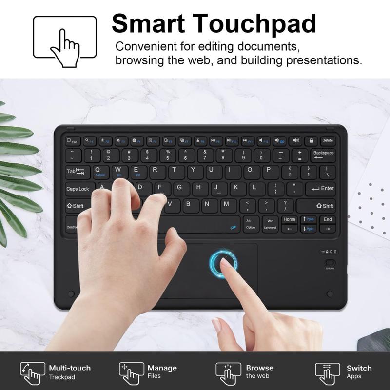 - Het Bluetooth-toetsenbord heeft ook een QWERTY-indeling en een ingebouwde oplaadbare batterij