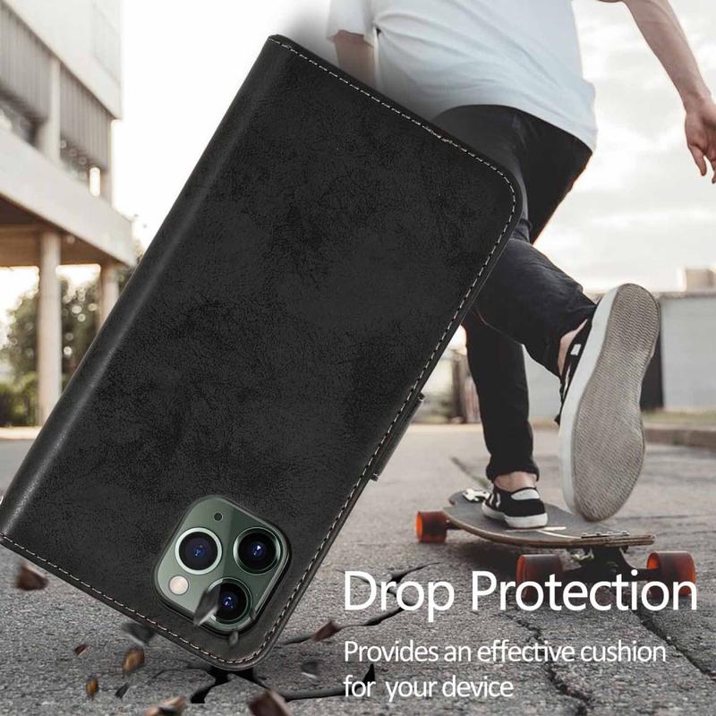 Deze hoes is gemaakt van retro mat polyurethaan met een zachte TPU-binnenlaag en biedt een comfortabel gevoel en betrouwbare bescherming tegen dagelijkse krassen, stoten en slijtage. De ingebouwde portemonnee heeft 3 kaartsleuven en een vak voor contant geld, zodat je al je benodigdheden gemakkelijk op één plek kunt meenemen. Het opvouwbare ontwerp doet ook dienst als standaard, waardoor je een comfortabelere handsfree kijkhoek hebt voor video's, surfen of bellen.