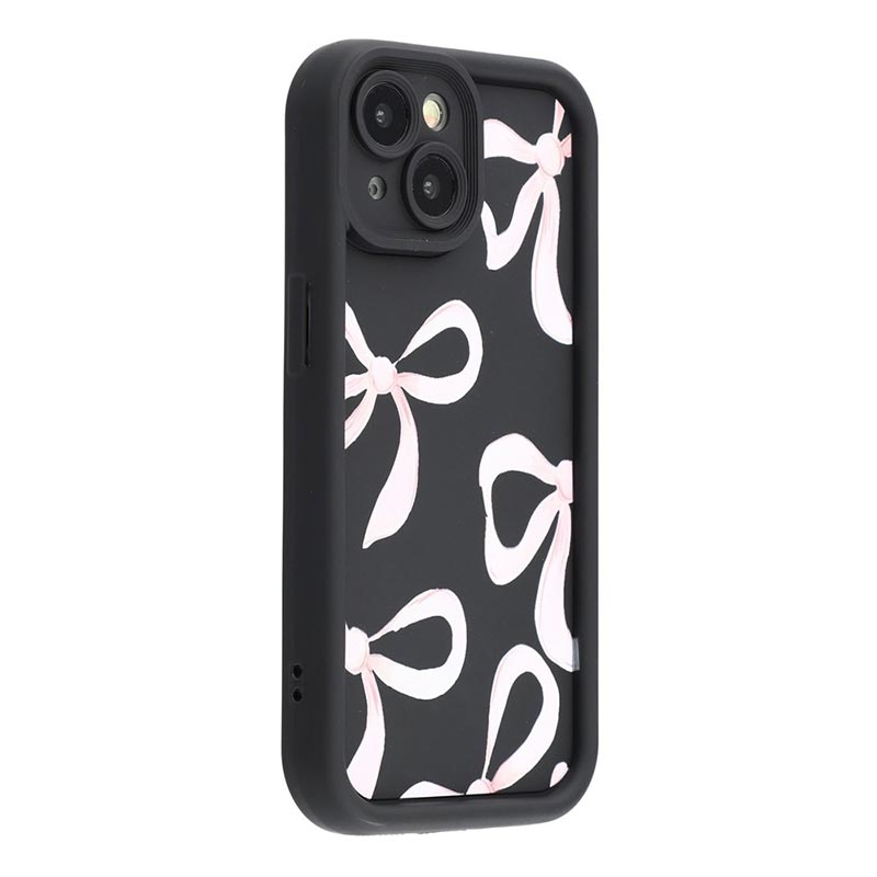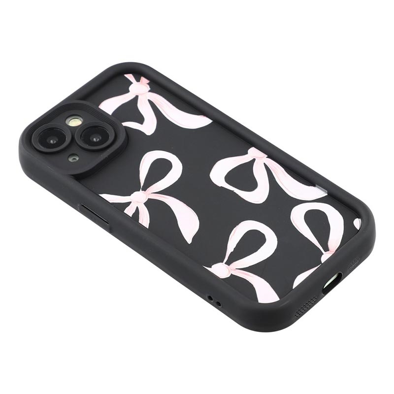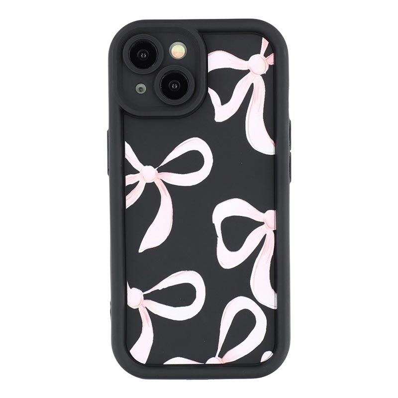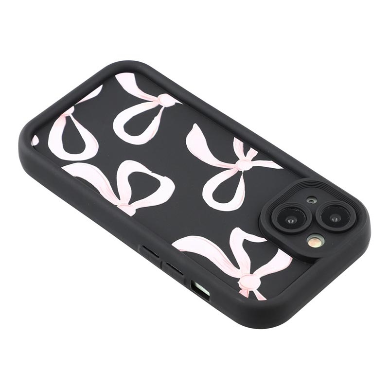 iPhone 14 Plus Stijlvol Schokbestendig TPU Hoesje met Opstaande Randen - Zwart / Grote strik