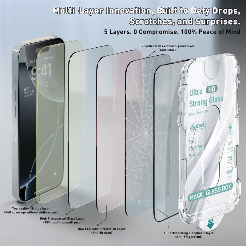 Of het nu voor werk, gaming of reizen is, deze beschermer zorgt ervoor dat je iPhone 14 Pro veilig blijft tegen krassen, vingerafdrukken en per ongeluk vallen, terwijl het installatiegereedschap het thuis snel en professioneel maakt.