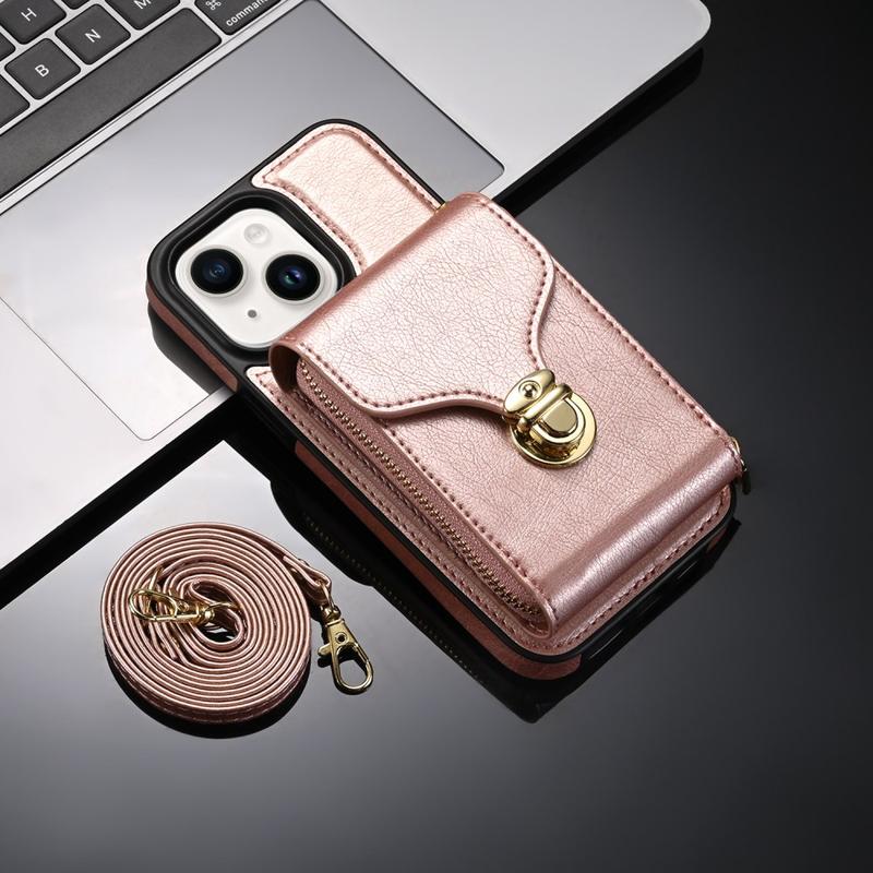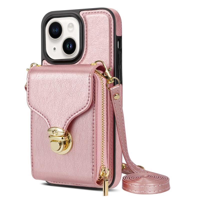Alles-in-één beschermhoes van TPU met portefeuille en riem voor iPhone 15