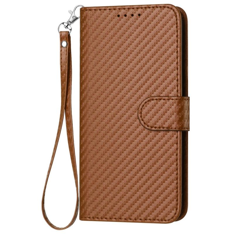 iPhone 15 Pro Max Premium Portemonnee Hoesje met Riem - Koolstofvezel Textuur - Koolstofkoffie