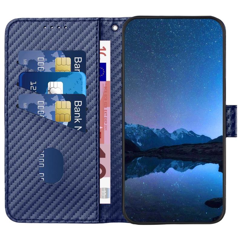 Premium Portemonnee Hoesje met Riem voor iPhone 15 Pro - Koolstofvezel Textuur