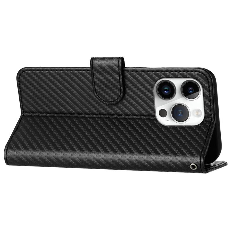 Premium Portemonnee Hoesje met Riem voor iPhone 15 Pro - Koolstofvezel Textuur