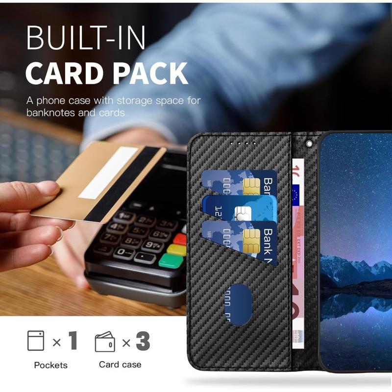 - Eersteklas koolstofvezelstructuur - Gemaakt van duurzaam polyurethaan (PU) met een verfijnd koolstofvezelpatroon en zachte TPU-binnenlaag voor betrouwbare schokabsorptie en krasbestendigheid.