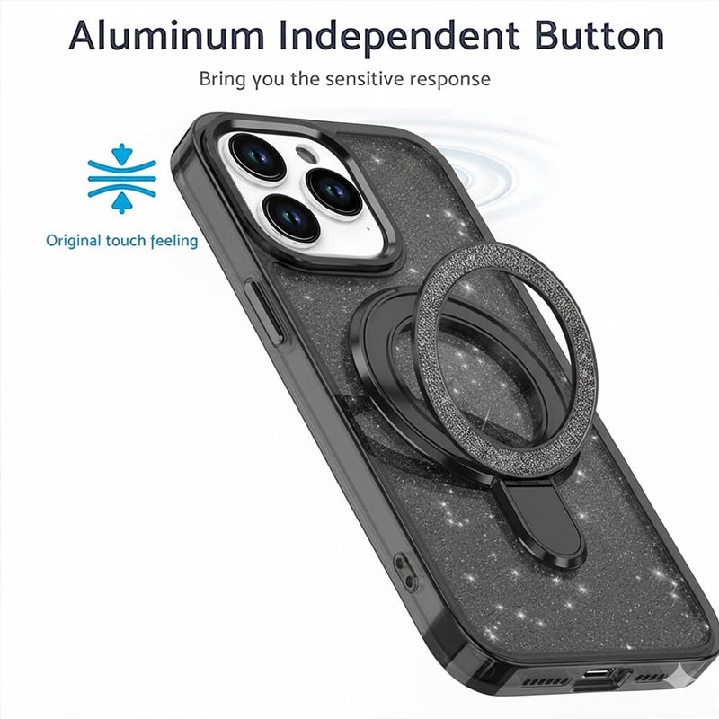 Breng stijl en bescherming samen met de iPhone 15 Pro glittercase, die elegante schittering combineert met betrouwbare duurzaamheid voor elke dag. Gemaakt van hoogwaardige materialen en uitgerust met een ingebouwde kickstand met metalen ring, houdt deze hoes je telefoon de hele dag veilig, functioneel en modieus.