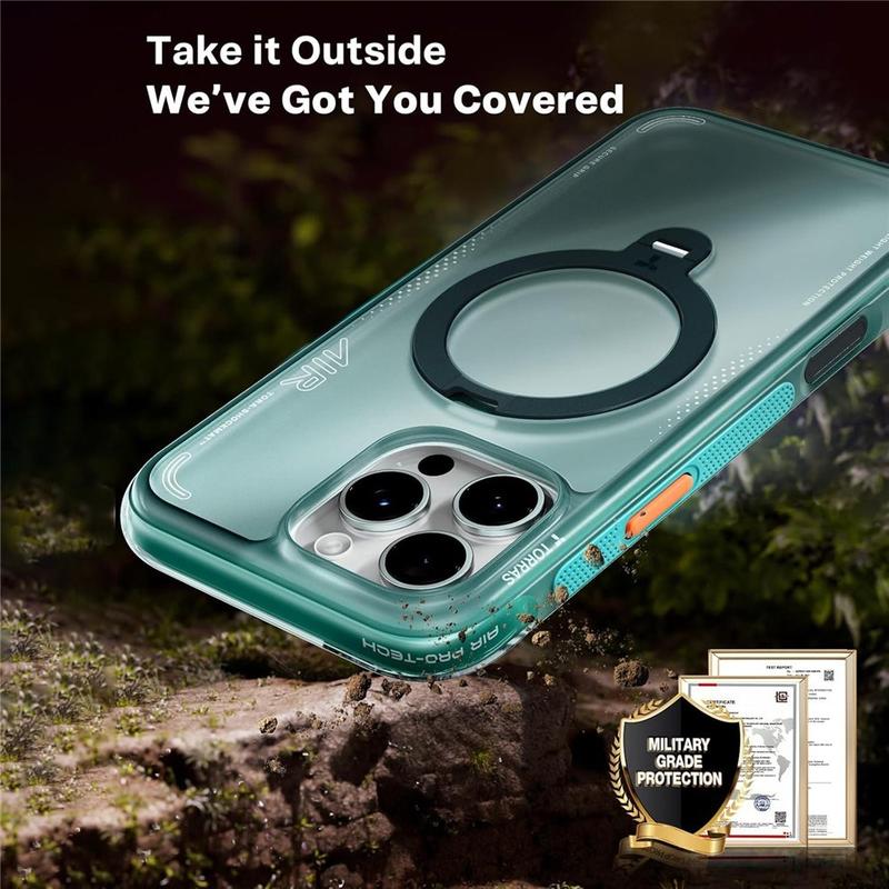 • Torras Ostand Q3 Air MagSafe Case voor iPhone 15 Pro Max - 360 Kickstand, AirMAX Airbag Bescherming, Sterke Magnetische Grip
