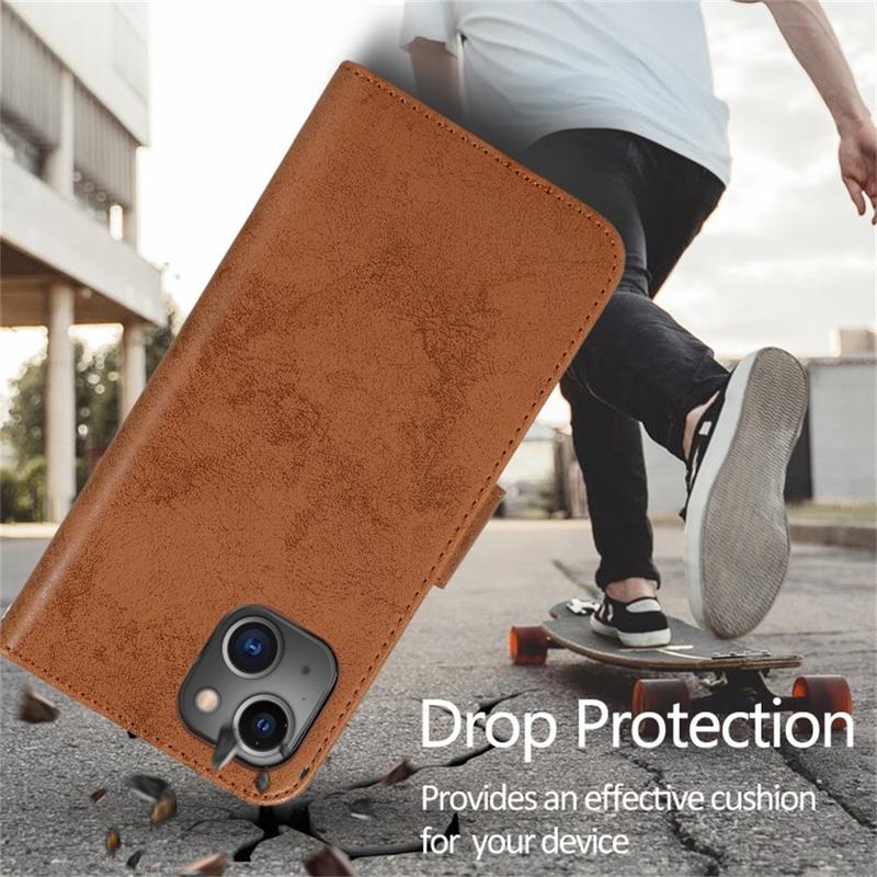 Deze hoes is gemaakt van retro mat polyurethaan met een zachte TPU-binnenlaag en biedt een comfortabel gevoel en betrouwbare bescherming tegen dagelijkse krassen, stoten en slijtage. De ingebouwde portemonnee heeft 3 kaartsleuven en een vak voor contant geld, zodat je al je benodigdheden gemakkelijk op één plek kunt meenemen. Het opvouwbare ontwerp doet ook dienst als standaard, waardoor je een comfortabelere handsfree kijkhoek hebt voor video's, surfen of bellen.