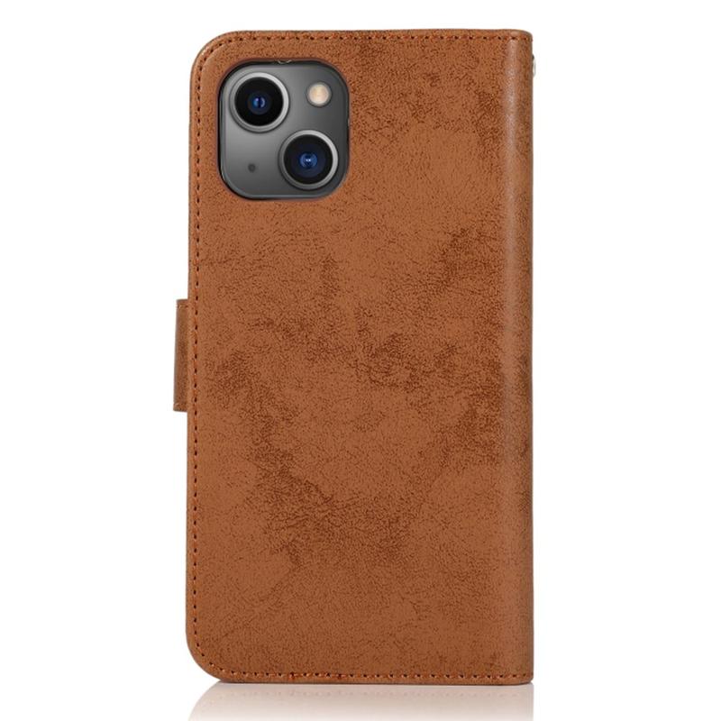 iPhone 15 Vintage 2-in-1 portemonneehoesje met afneembare omslag - bruin