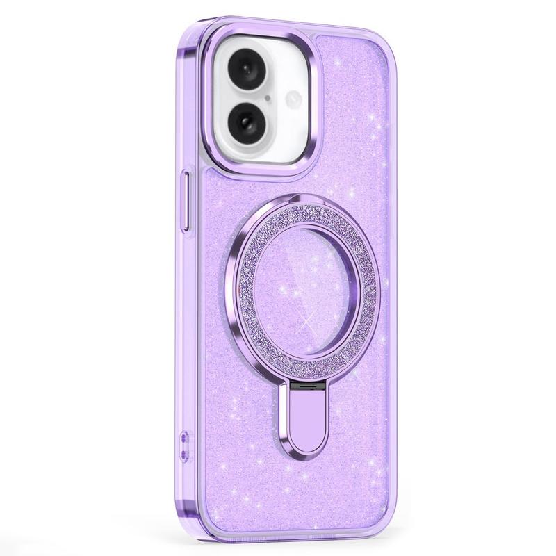iPhone 16 Glitter Hybride Hoesje met Kickstand - MagSafe Compatibel - Paars