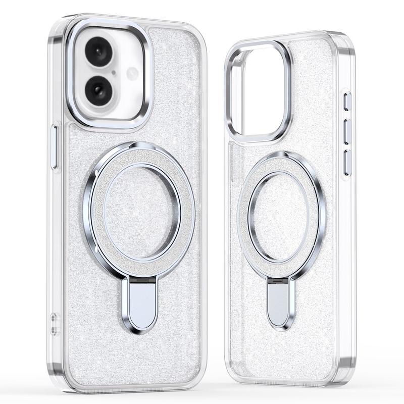 Glitter Hoesje met kickstand voor iPhone 16 - MagSafe compatibel TPU + PC hybride kickstand cover