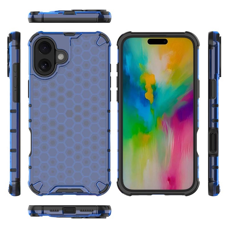 Het Honeycomb Armored hybride hoesje vertegenwoordigt een extra duurzaam schild voor je iPhone 16.