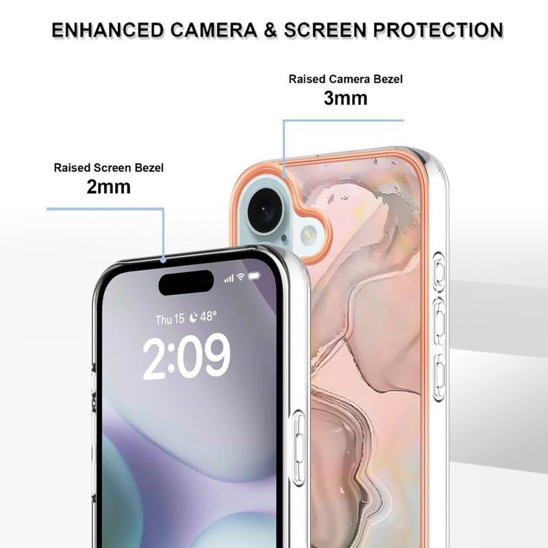 Bescherm je iPhone 16 optimaal tegen alledaagse vormen van schade door gebruik te maken van dit geweldige en elegante telefoonhoesje met een marmer patroon! Duurzaam materiaal en uitstekende bescherming: krasbestendig en slijtvast, antislip, zowel levendig als stijlvol patroonhoesje beschermt en personaliseert je iPhone 16 tegelijkertijd! Alle knoppen en poorten zijn gemakkelijk toegankelijk. Uniek ontwerp, Marble Pattern Electroplating Case is gemaakt van flexibel en zacht TPU-materiaal, slim-fit, lichtgewicht, past perfect bij je iPhone 16 terwijl je hem altijd in stijl houdt!