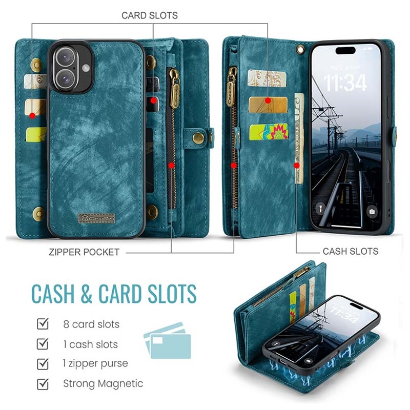 Maak je dag superefficiënt met de Caseme 008 2-in-1 iPhone 16 Plus portemonneehoes.