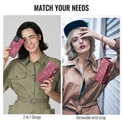 Deze accessoire zit boordevol functies waarmee je al je essentials en je iPhone 16 Plus bij elkaar kunt dragen. De afneembare TPU-hoes is bekleed met splitleer, waardoor je apparaat een high-end look krijgt en beschermd is tegen schade.