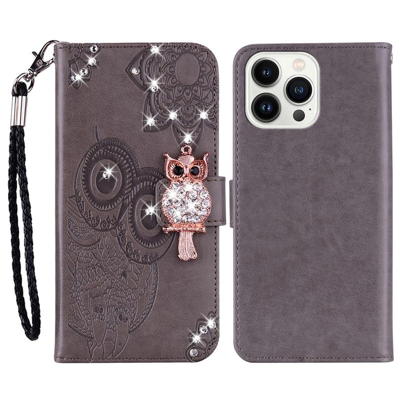 iPhone 16 Pro Uil Strass Portemonnee Hoesje - Grijs