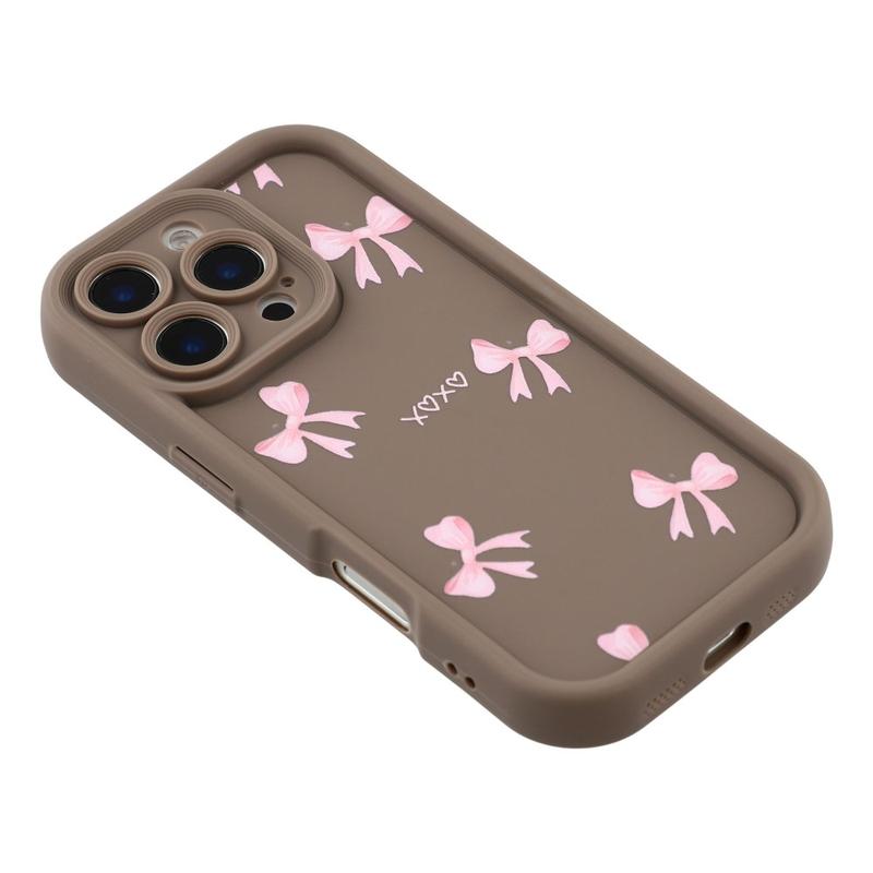 iPhone 16 Pro Max Stijlvol Schokbestendig TPU Hoesje met Opstaande Randen - Bruin / strik