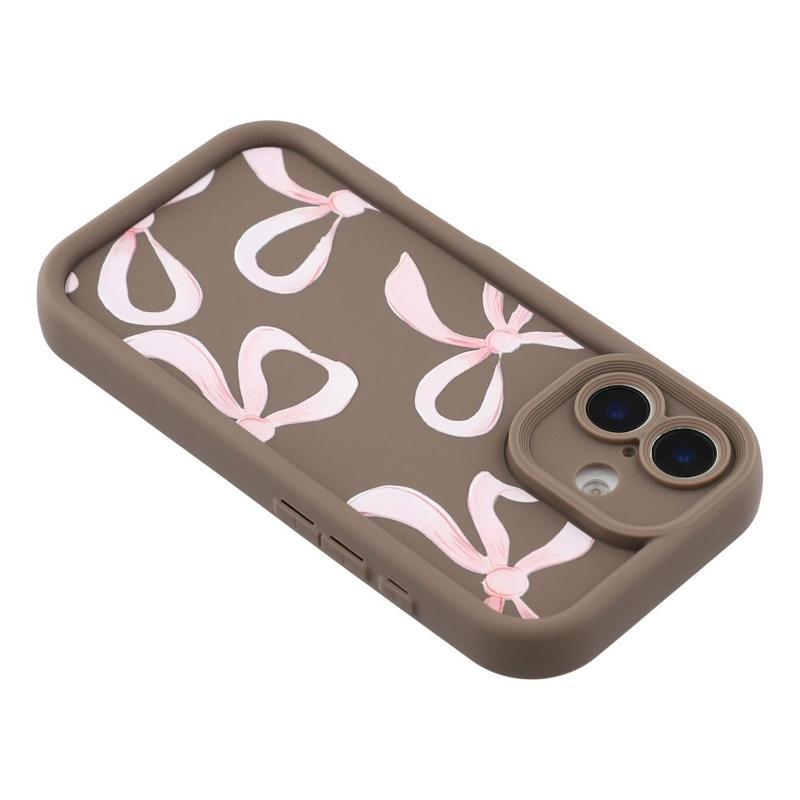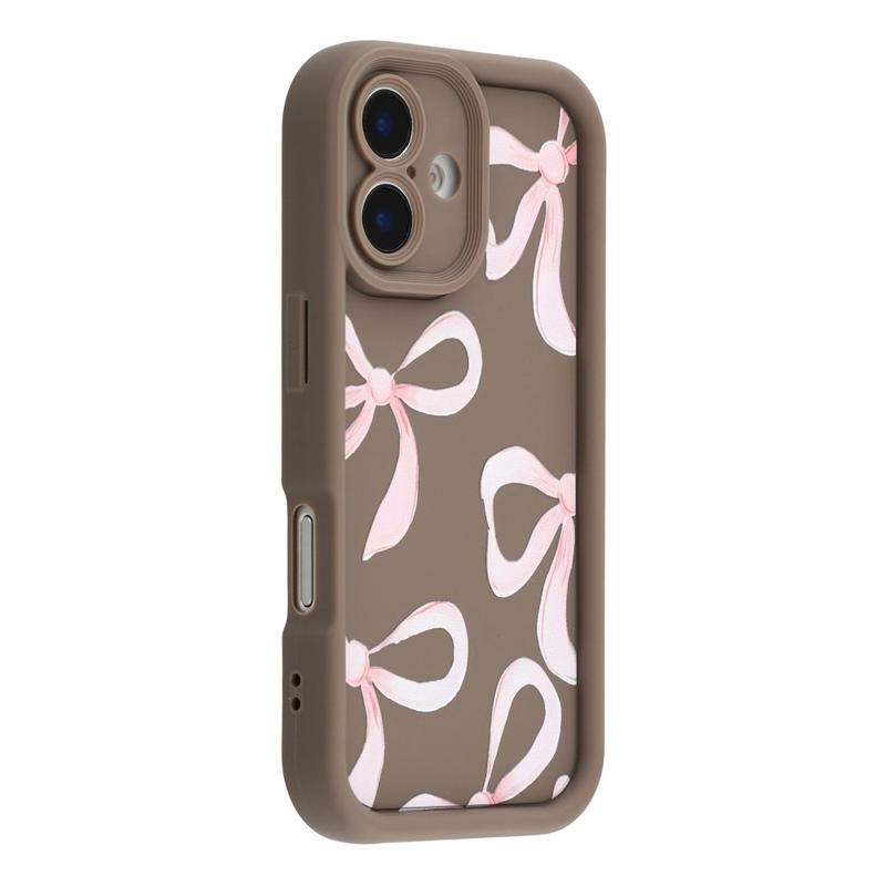 iPhone 16 Stijlvol Schokbestendig TPU Hoesje met Opstaande Randen - Bruin / Grote strik