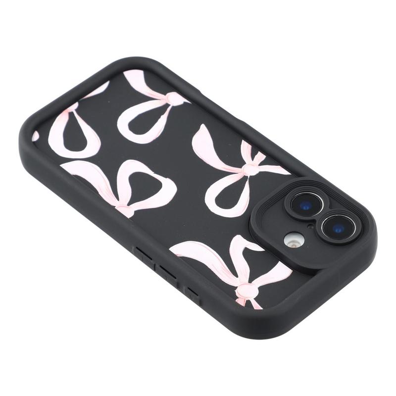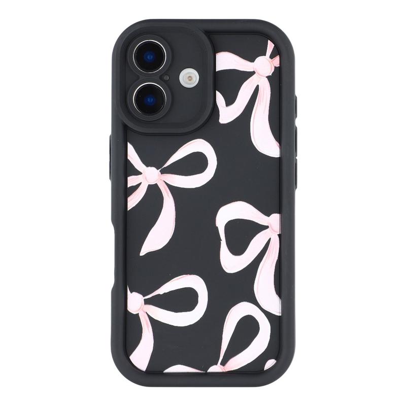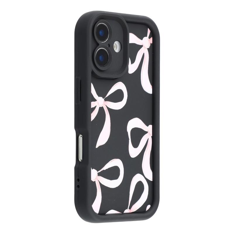iPhone 16 Stijlvol Schokbestendig TPU Hoesje met Opstaande Randen - Zwart / Grote strik