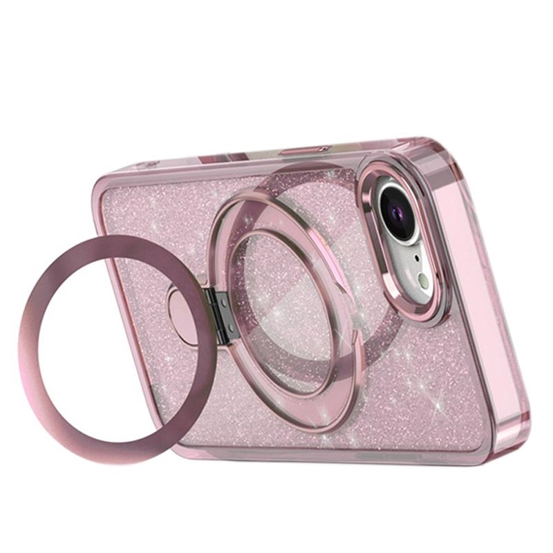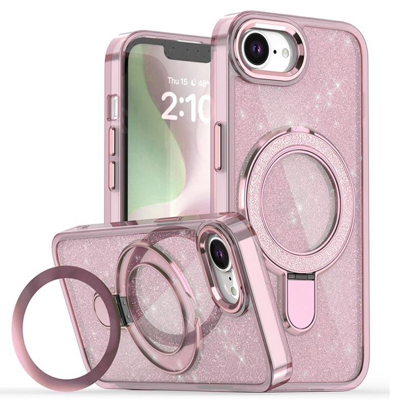 iPhone 16e Glitter Hybride Hoesje met Kickstand - MagSafe Compatibel - Roze