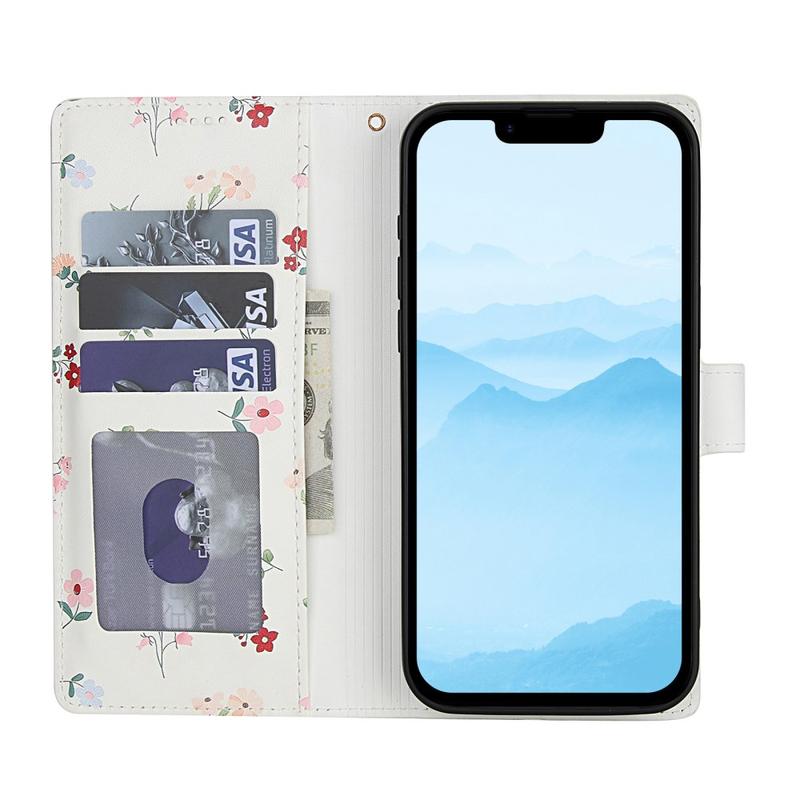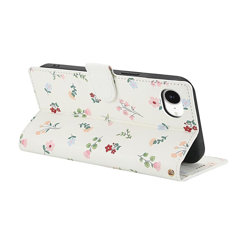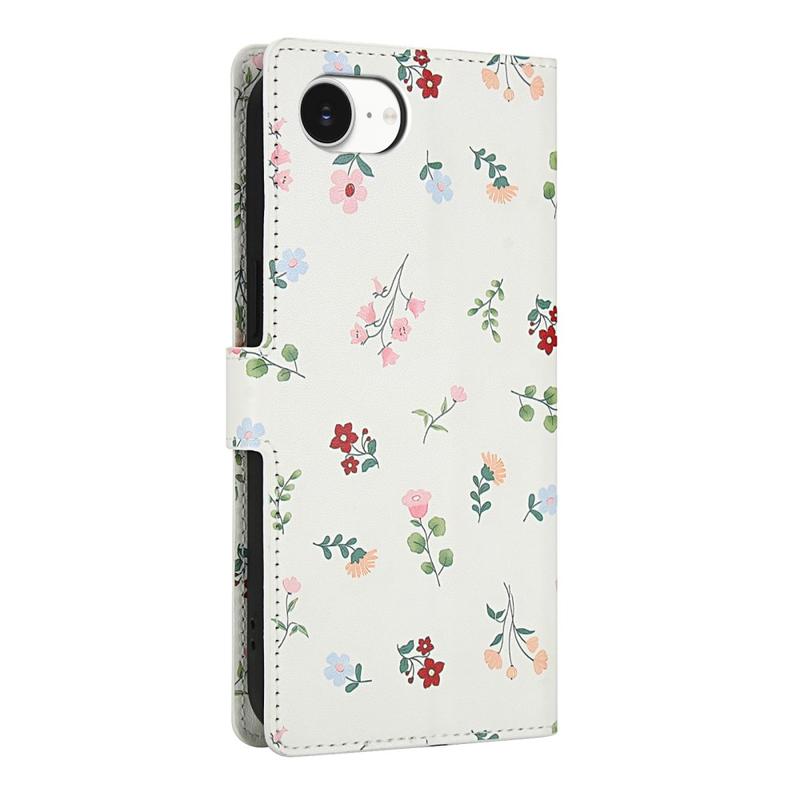 Ruitvormige Bloemen Portemonnee Hoesje voor iPhone 16e, iPhone 17e - met riem en kaartsleuven